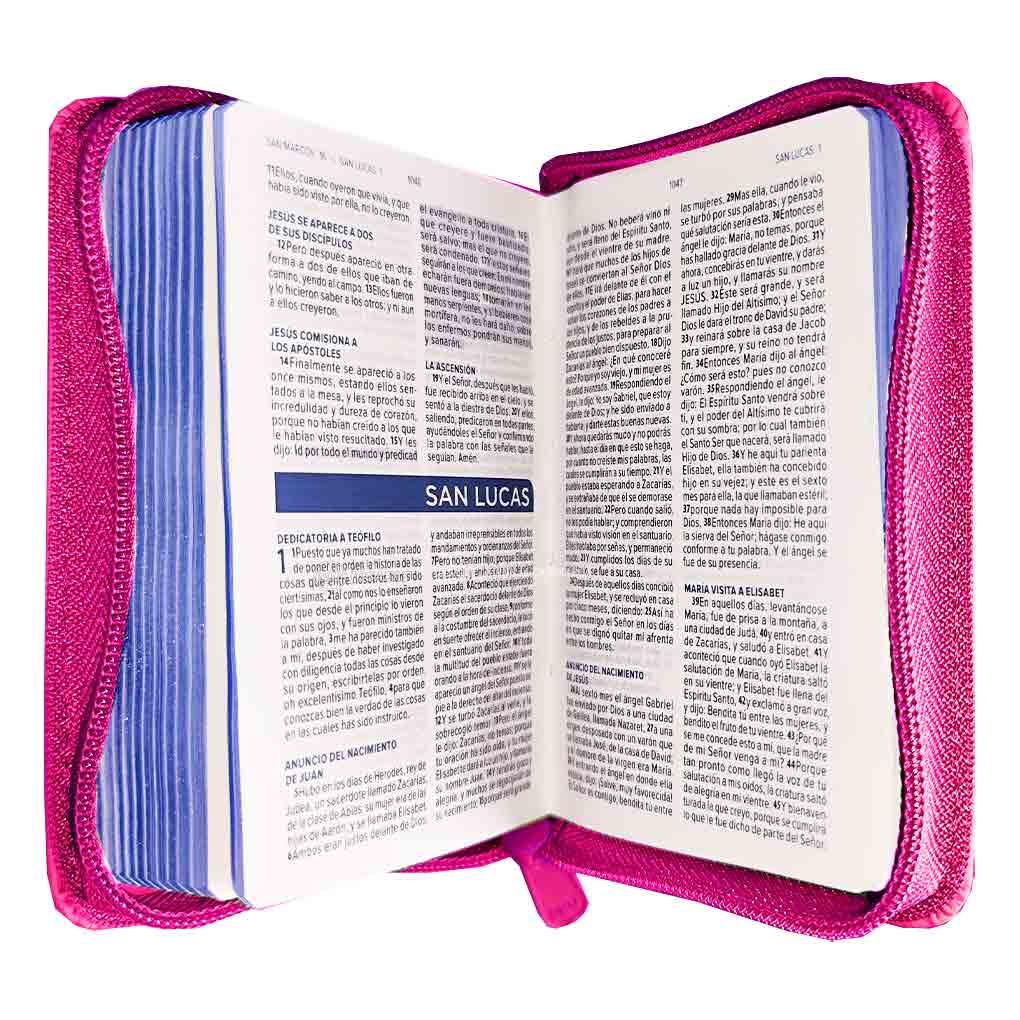 Biblia RVR1960 Bolsillo Mini Biblia Tapa Piel Cierre Fucsia