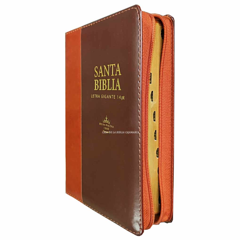 Biblia RVR1960 Letra Gigante 14 Pts Tapa Piel con Cierre Marron Personal Filo Dorado con Indice