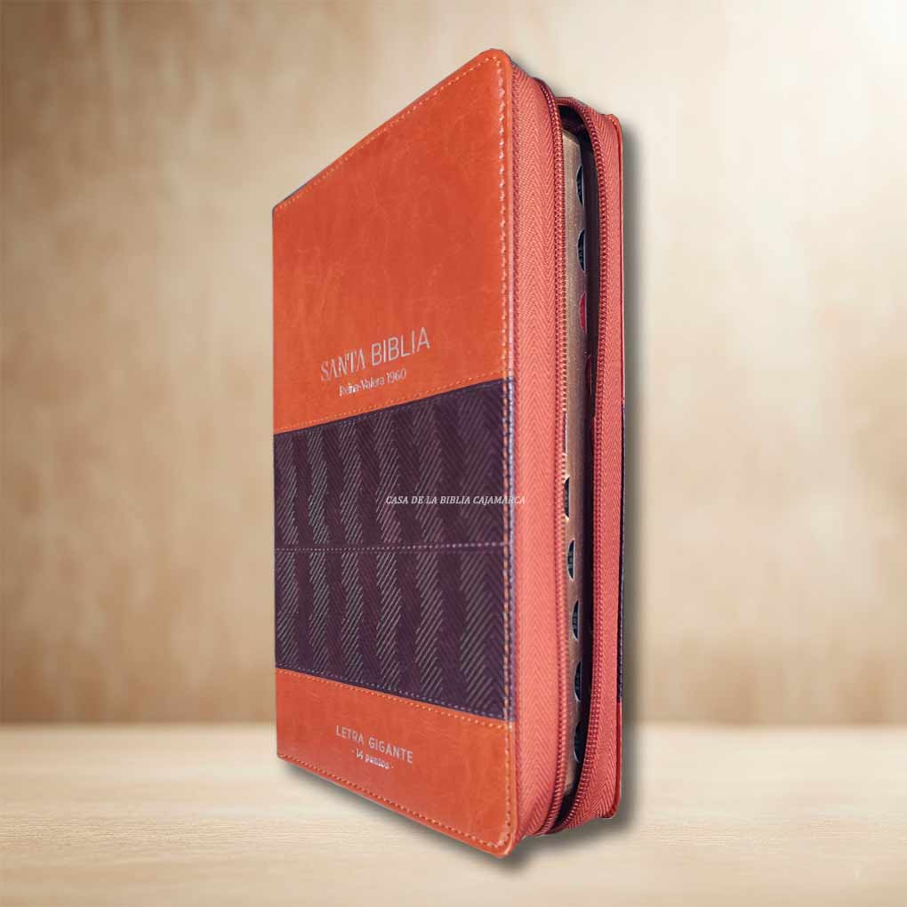 Biblia RVR1960 Letra Gigante 14 Pts Tapa Piel con cierre e indice Personal Filo Dorado con Indice