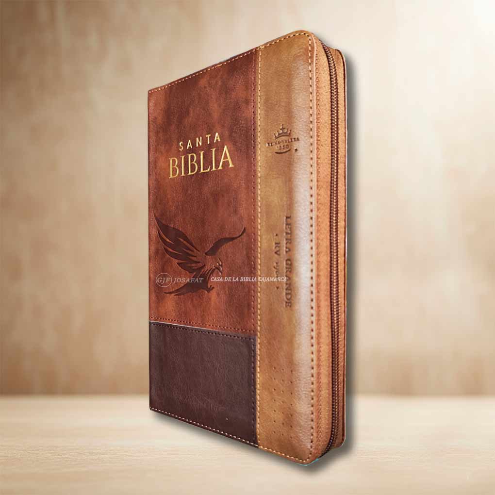 Biblia RVR1960 Personal Letra Grande 12 pts Tapa Simil Piel Aguila Cierre Indice MB Cafe Tritono