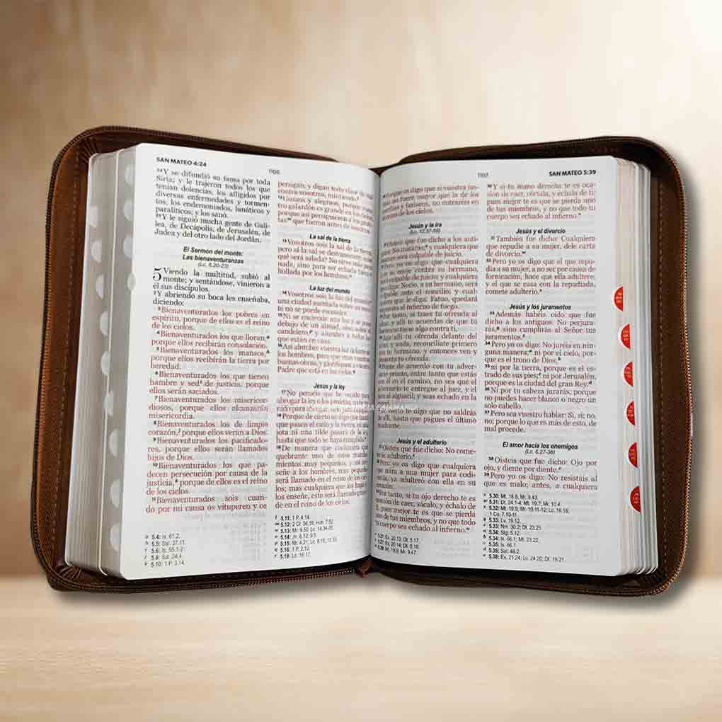 Sé el primero en valorar “Biblia RVR1960 Personal Letra Grande 12 pts Tapa Simil Piel Aguila Cierre Indice MB Cafe Tritono”